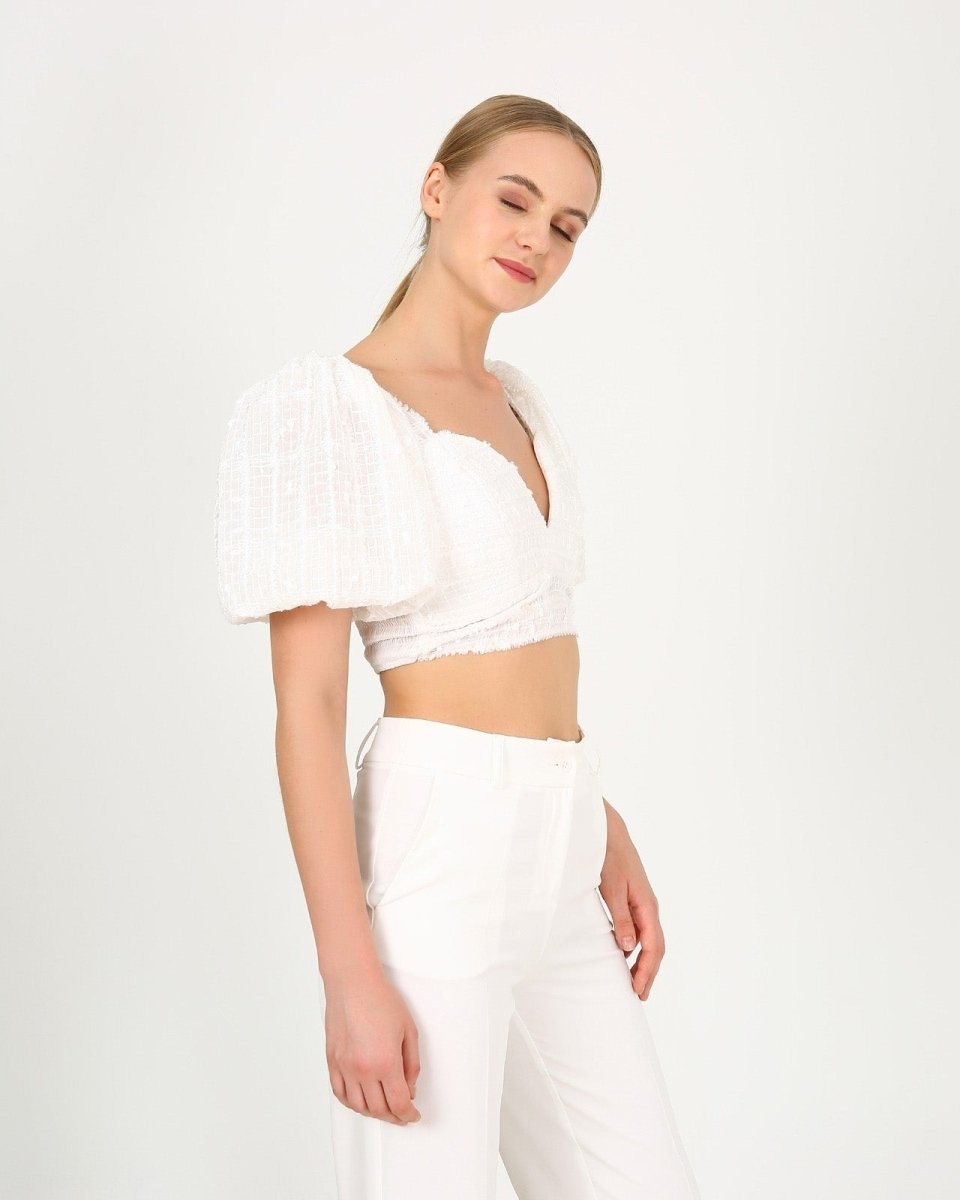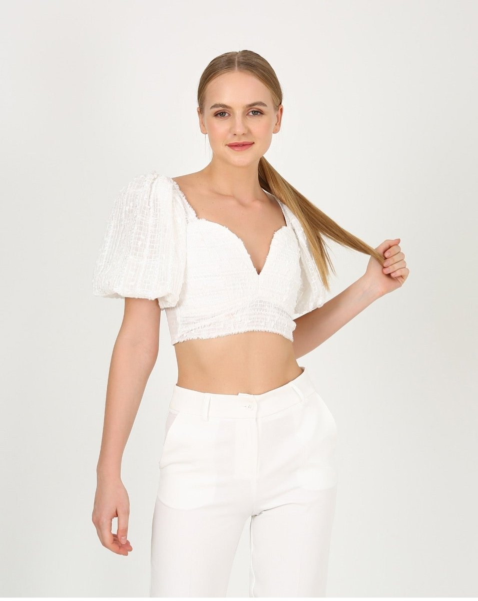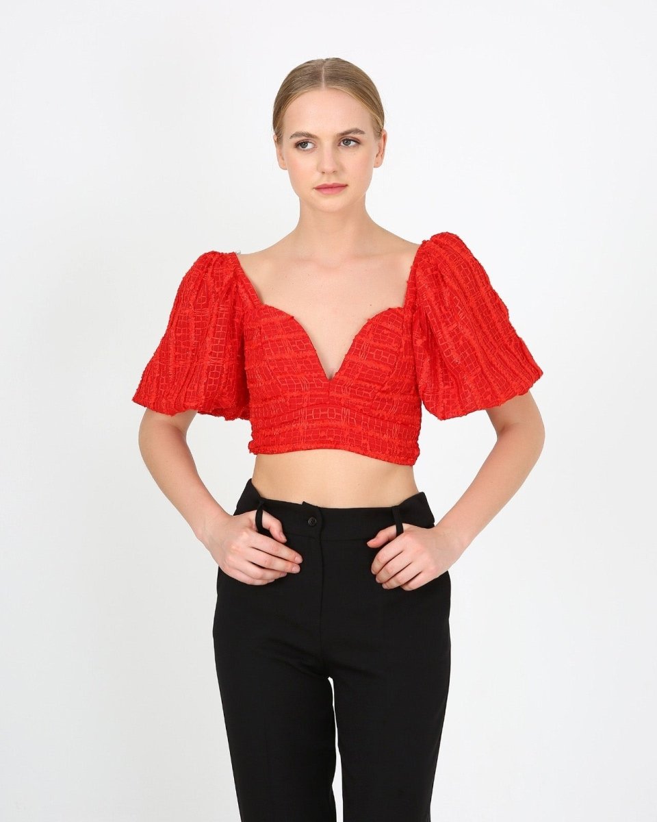 This NYAH crop top has everyone ballooning with joy! üéà With its subtle but stylish balloon sleeves, this top will add a fun and flirty vibe to any look. Let your style take off with this crop and show the world how you really feel! ü§©