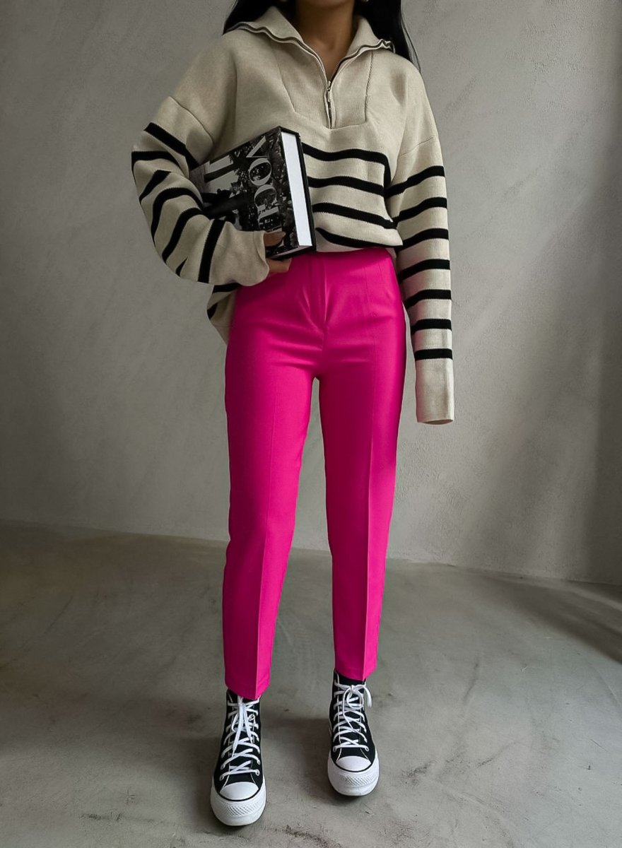 MAEVA pants offer superior comfort thanks to their lightweight, breathable fabric and relaxed fit. Stay stylish while feeling comfortable all day long in these essential trousers – perfect for any occasion.