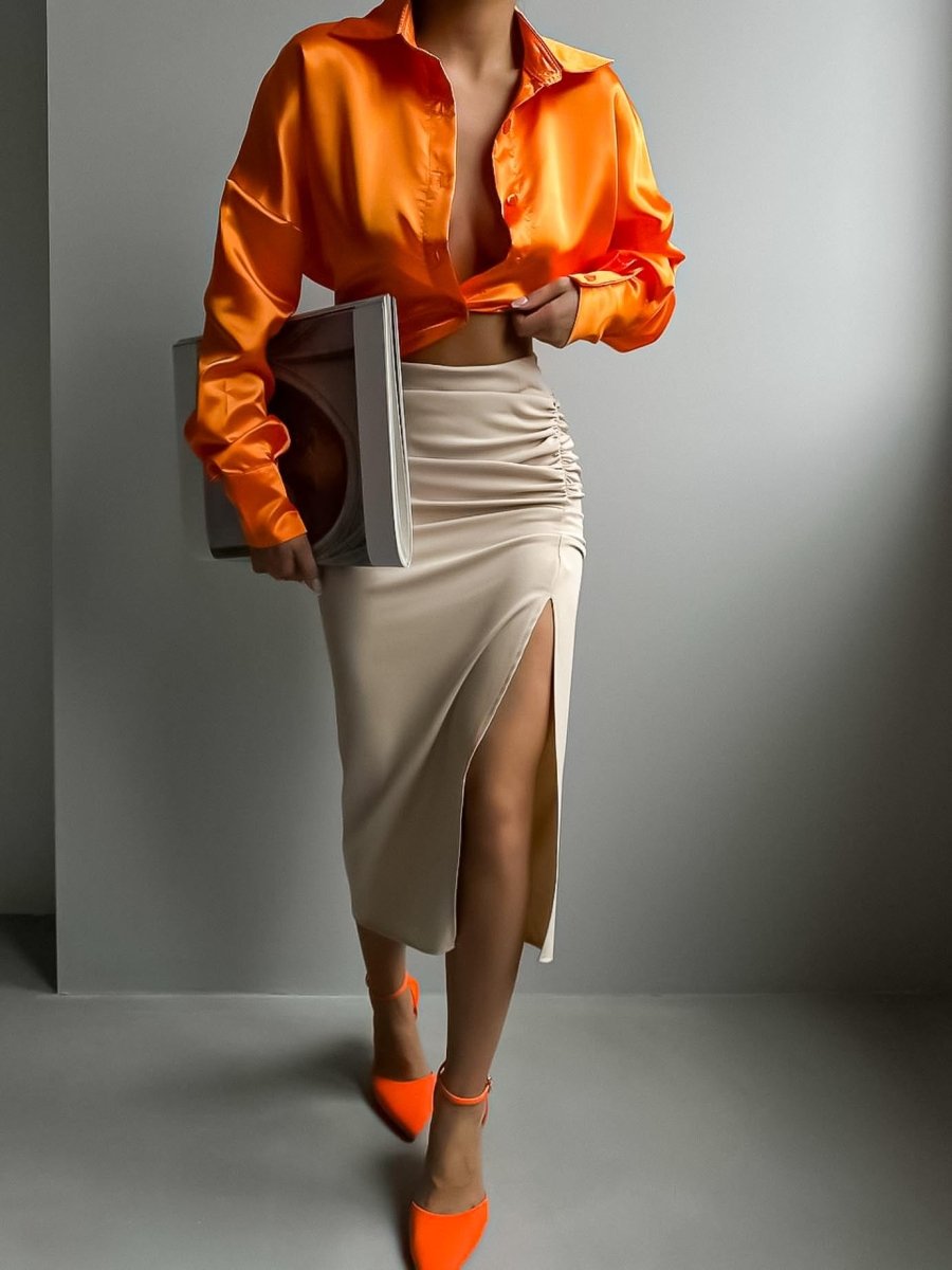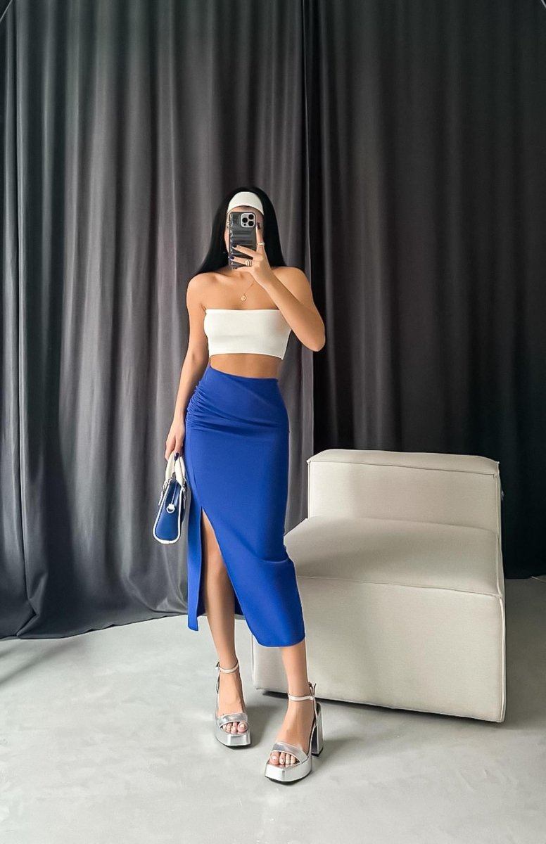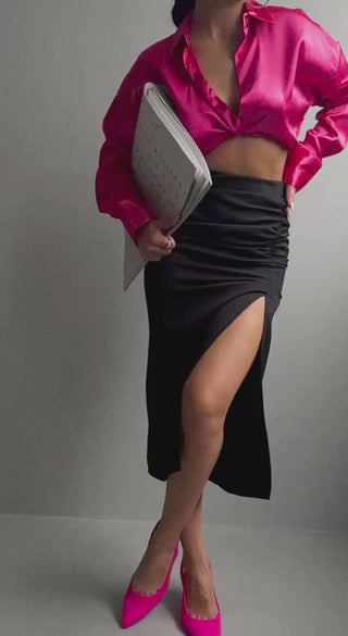 Treat yourself to the exquisite BELLE skirt. Crafted with meticulous attention to detail, it features a side zipper, a side opening, and a twisted side for a look of subtle elegance. With BELLE, you'll stride with a confident, sophisticated air. 💅